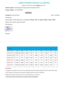 “Datesheet for the Pre-Mid Term Assessment”